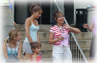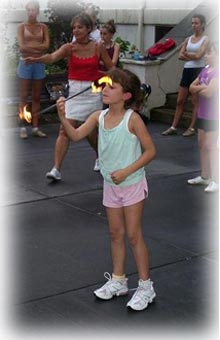 As usual, baton camp was a blast! Pictured at right is Olivia trying fire baton and at left, pictured at the camp finale, instructor Alyssa, camper Olivia, and director Miss Diane.