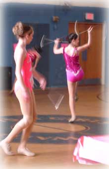 | Here are some action shots of the Strutters at the recent Miss Majorette of Mass contest. Top row from left: Alyssa, Nikki, Chrissy and Katie. Bottom row from left: Alicia, Nadine and Alison. | ||