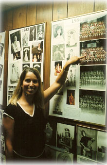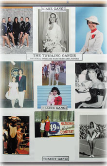 What a wonderful opportunity Miss Tracey had this summer. After going to a future niece-in-law's wedding, she went with the rest of the family to "the Dells" -- for those old time twirlers, you'll remember that Don Sartell held a twirling camp there. The trip home took the group right through Janesville, WI, the location of the National Twirling Museum. Some of the displays are still under construction but there was still so much to see! And what a surprise to see a display dedicated to "The Twirling Gangis!" Below you'll see Miss Tracey posed next to that poster. She's pointing to a poster of champions, where she is posed with contenders for the 1984 Junior National Championship in Las Vegas. So how can she not marry Mr. Jeff, he was an enthusiastic participant in the personal tour, given by Don Sartell. Also on the tour, the rest of Mr. Jeff's family, including several current and former marching band members -- there was plenty for them to see and appreciate too! |