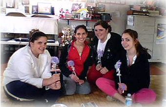 Danielle, Alison, Arielle and Chrissy were all celebrated by their teammates during practice recently. Danielle, Arielle and Chrissy all share the month of April for their birthdays and Alison had a successful showing at the Outstanding Teen Massachusetts pageant. Teammate Alicia brought cake and 'princess wands' to mark the occasion. |