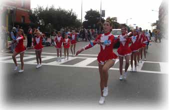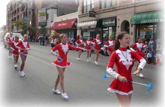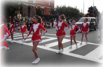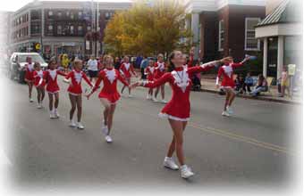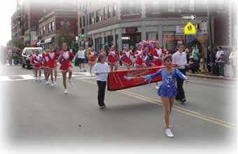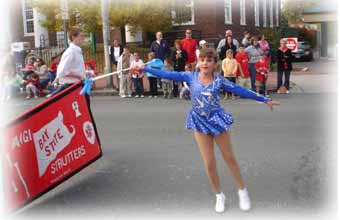 | As always, the Strutters were a well received group in the Columbus Day Parade. Participants this year were... front row - Allie (Kayla's sister), Deidre, Amber, Olivia, Whitney, Jesse, Kenneth (Whitney's brother); back row - Jessica, Kayla, Amanda, Nikki, Kathryn, Chrissy, Katie, Alison. | |