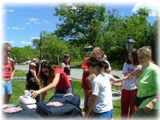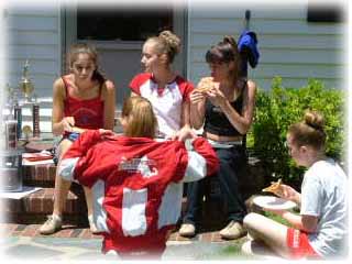 | The Strutters had a great time at their end of the year Pizza Party. They played games; team trophies were distributed and new Advanced team members were recognized. Alicia got a special congratulations for graduating high school from her All-Star teammates. Check out the delicious fruit basket the Danvers Dolls sent for us to enjoy! | ||